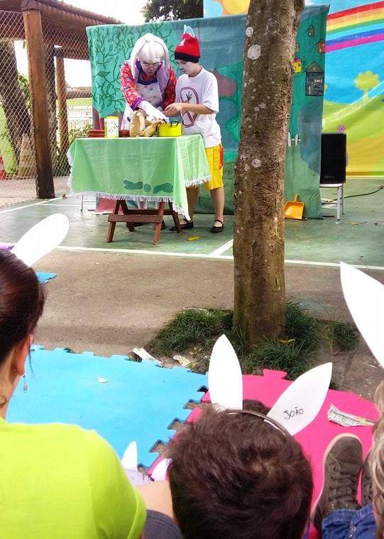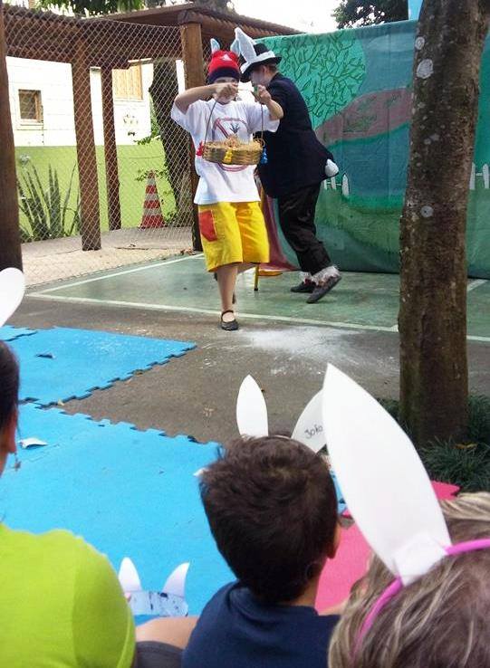 “Coelhildo da Páscoa” conta a história de Coelhildo, um coelhinho que mora na Aldeia dos Coelhos. Nesta aldeia os coelhos passam o ano todo fazendo ovos de chocolate para entregar na páscoa. Quer dizer, alguns coelhos fazem o chocolate, outros fazem os ovos de chocolate, outros embrulham esses ovos de chocolate em lindos papeis coloridos… Mas alguns, e somente alguns coelhos são escolhidos para serem coelhos da páscoa. Somente alguns poucos coelhos podem sair da aldeia na noite de páscoa para entregar os ovos de chocolate. E tudo que o Coelhildo mais queria era ser um coelho da páscoa, ele sonhava com isto desde quando era um bebezinho e ainda tomava suco de cenoura na mamadeira. Só que o Coelhildo fora escolhido para outra atividade, sua função era limpar as panelas sujas de chocolate. Ele não gostava nada, nada disso. Então ele teve uma ideia genial, ele iria falar com Seu Noura, chefe da Aldeia dos Coelhos.