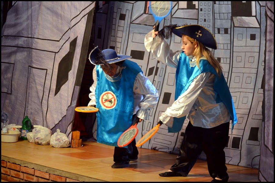Algumas fotos da apresentação do espetáculo "Os Três Mosquiteiros" na Escola Municipal de Ensino Fundamental Miguel Gustavo da cidade de Sapucaia do Sul - RS, durante a programação da Semana da Criança.