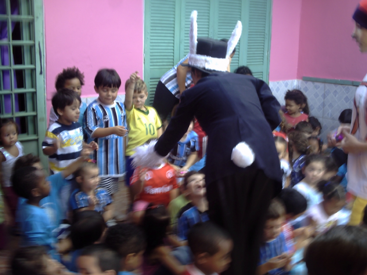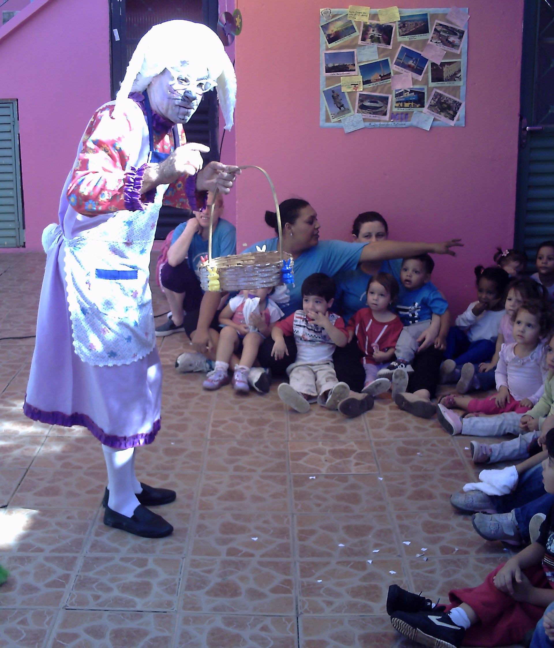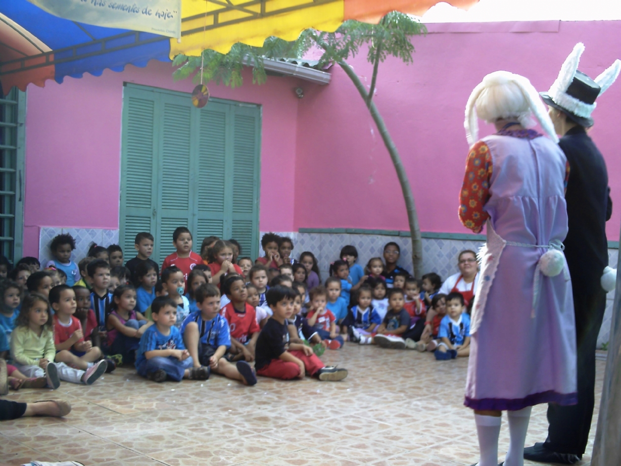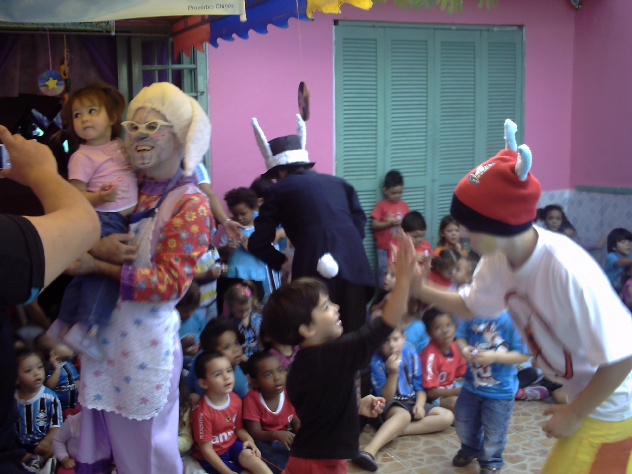Algumas fotos da apresentação do espetáculo "Coelhildo da Páscoa" na Escola de Educação Infantil Canto dos Anjos Soares em Porto Alegre - RS.