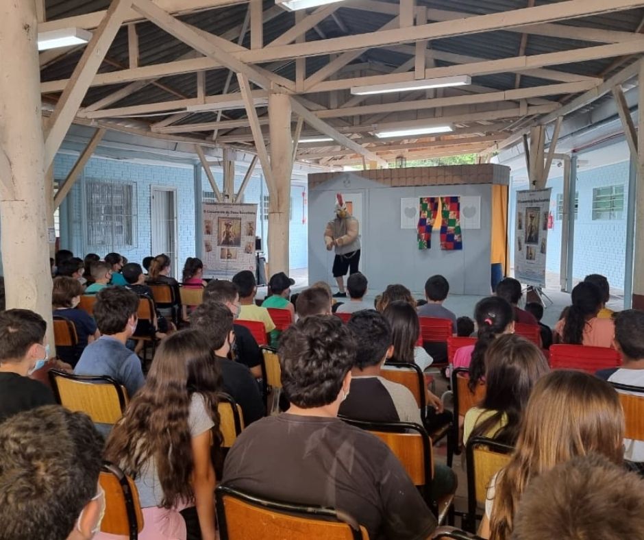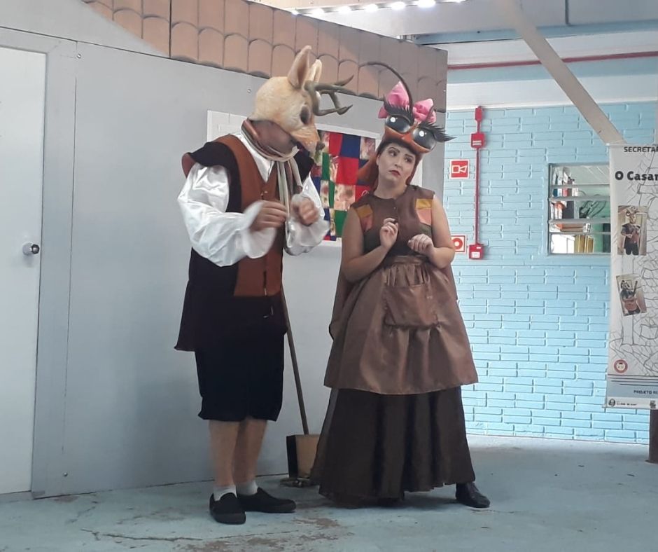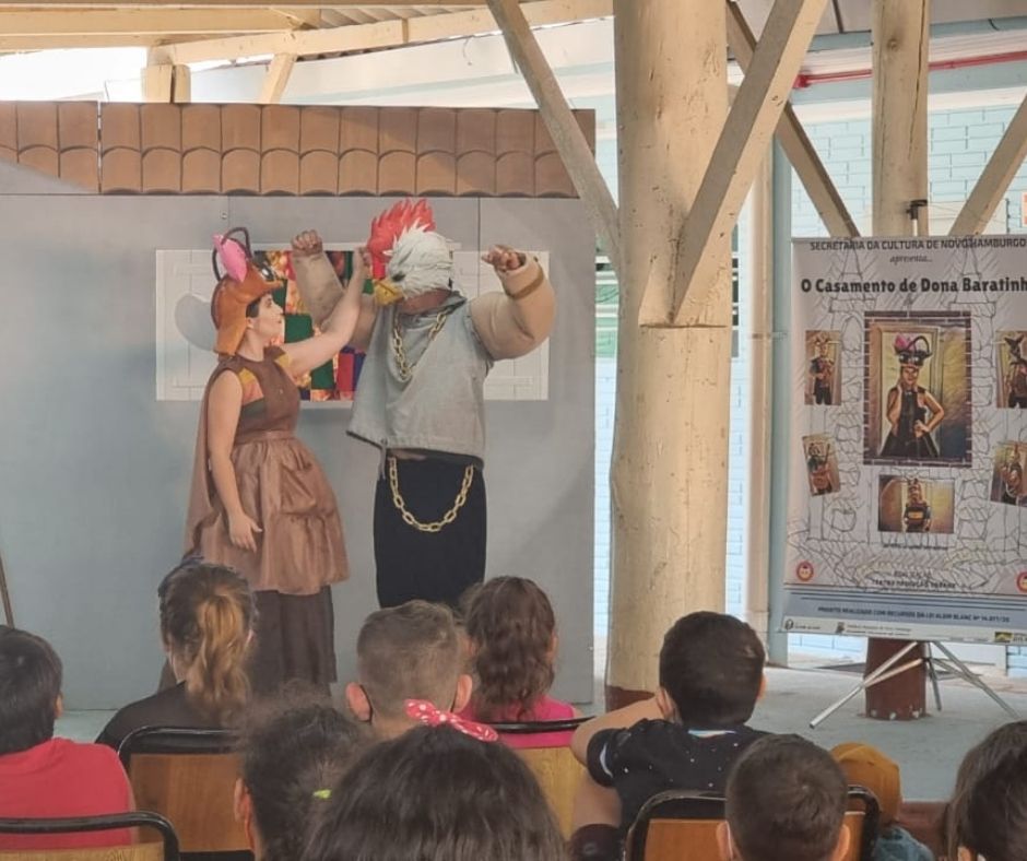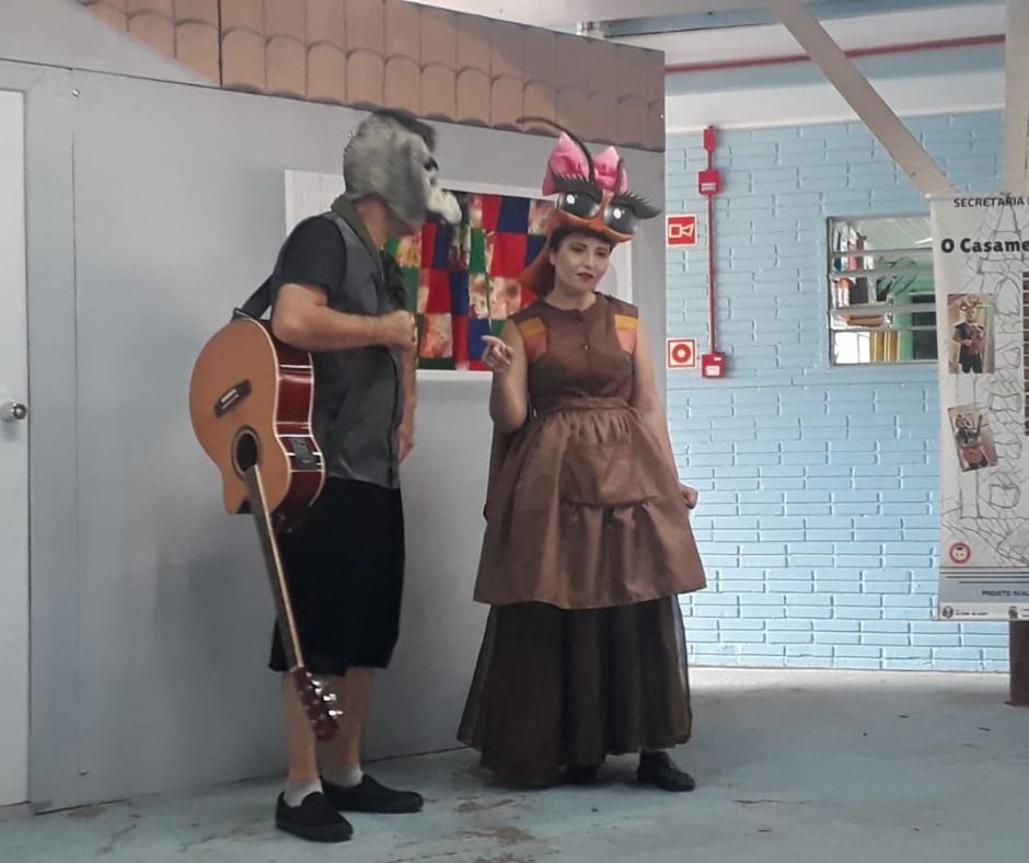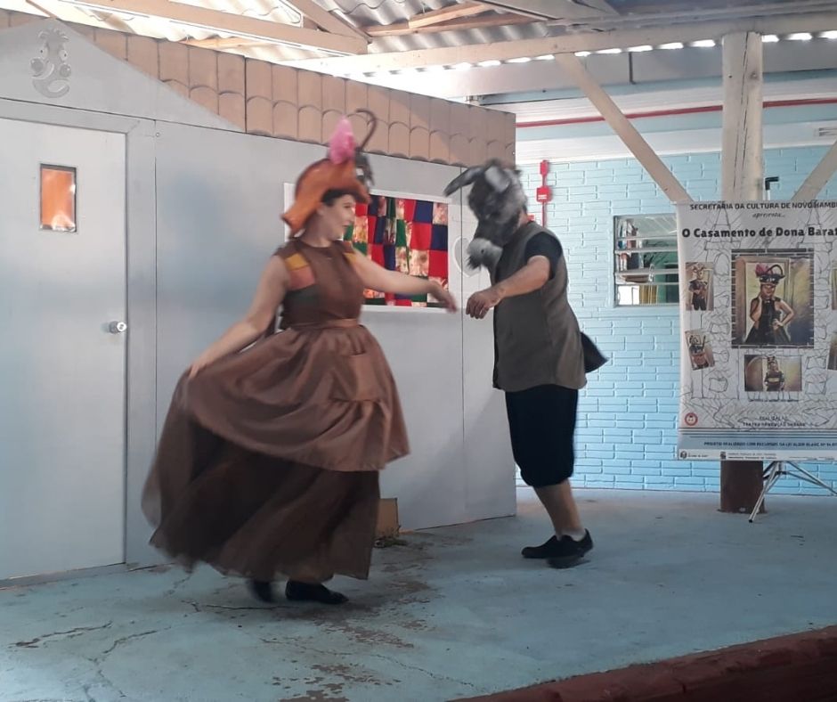 Algumas fotos da apresentação do espetáculo "O Casamento de Dona Baratinha" no dia 30/11/2021 na EMEF Darcy Borges de Castilhos do Bairro Liberdade em Novo Hamburgo. Projeto executado com recursos da Lei Aldir Blanc nº14.017/20.