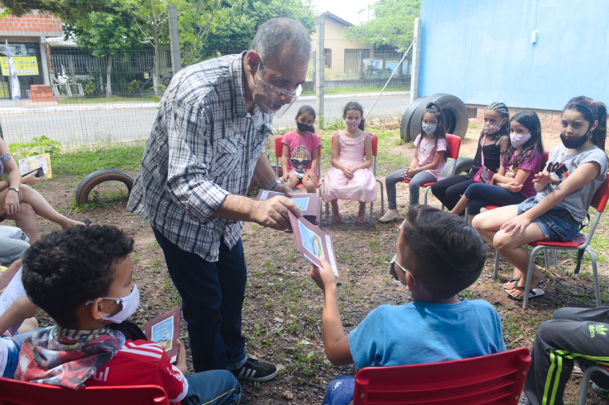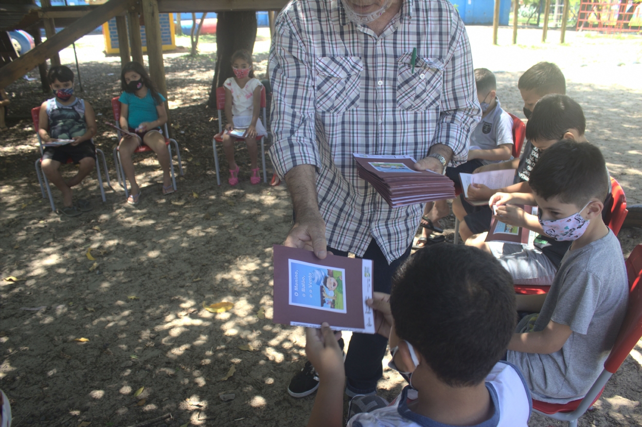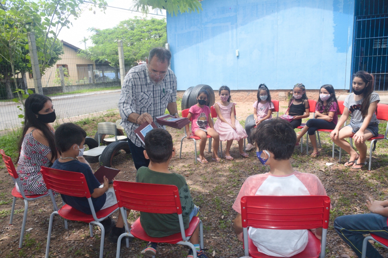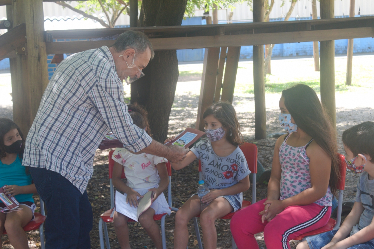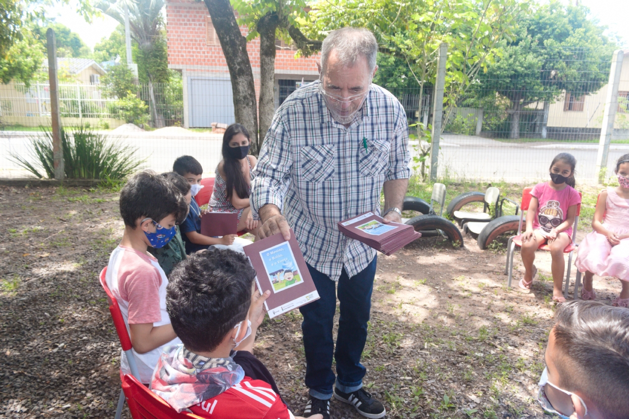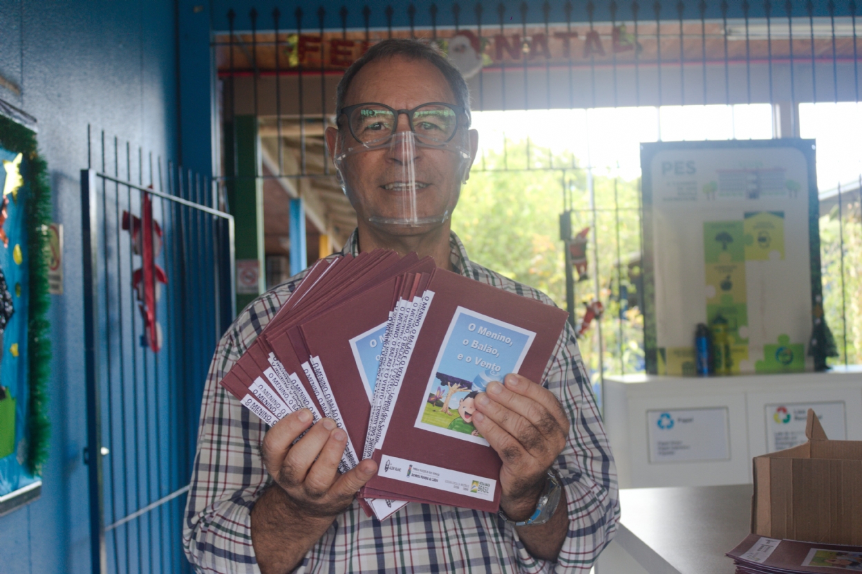 Algumas fotos da entrega do livro "O Menino, o Balão e o Vento" para alunos da EMEF Harry Roth do Bairro Santo Afonso em Novo Hamburgo. Este livro foi produzido de forma artesanal em cumprimento ao Auxílio Emergencial. Projeto realizado e executado com recuros da Lei Aldir Banc nº 14.017/20.