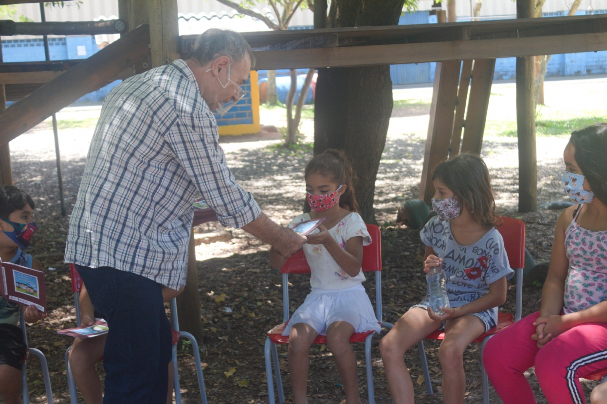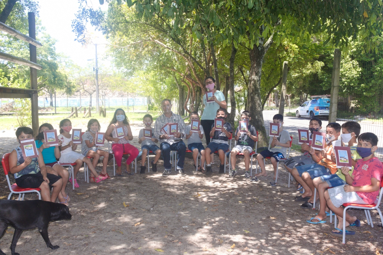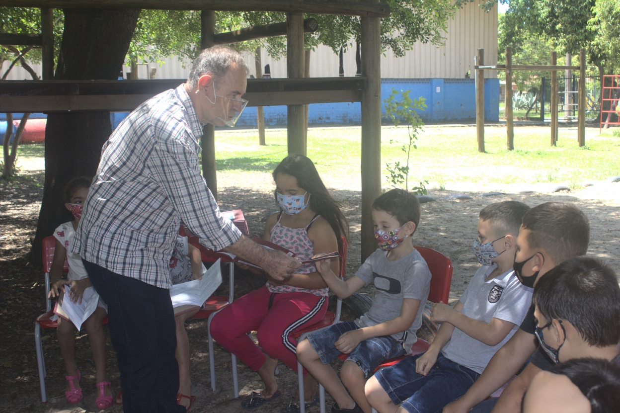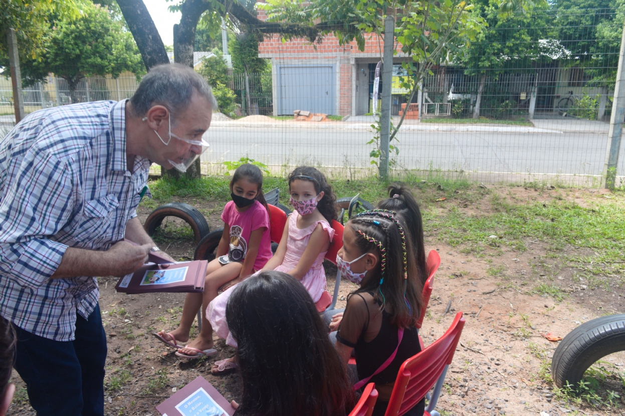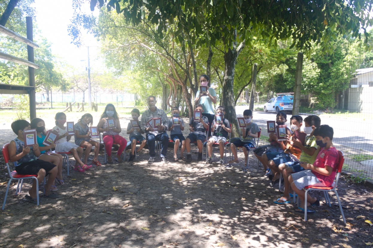 Algumas fotos da entrega do livro "O Menino, o Balão e o Vento" para alunos da EMEF Harry Roth do Bairro Santo Afonso em Novo Hamburgo. Este livro foi produzido de forma artesanal em cumprimento ao Auxílio Emergencial. Projeto realizado e executado com recuros da Lei Aldir Banc nº 14.017/20.