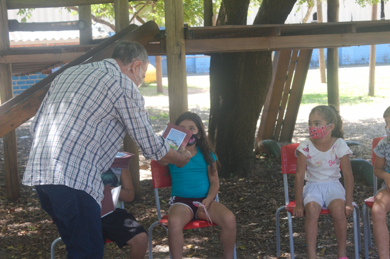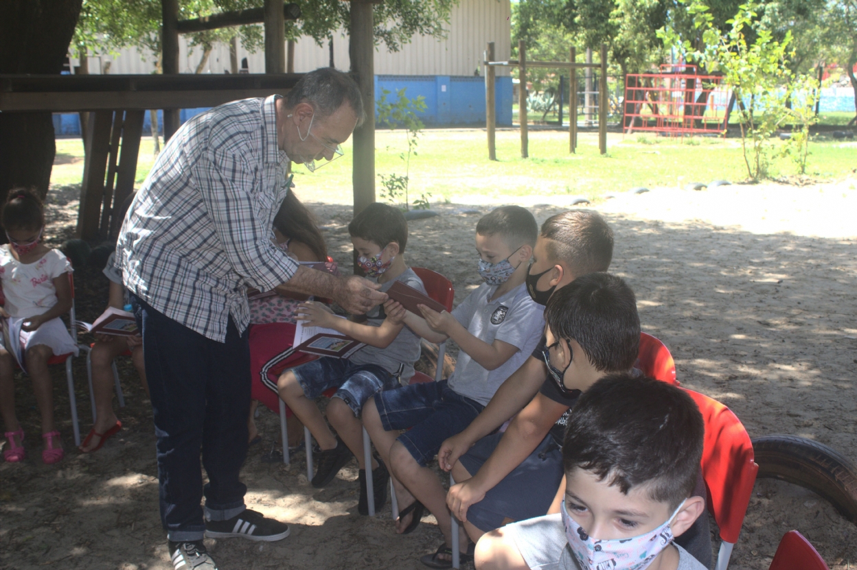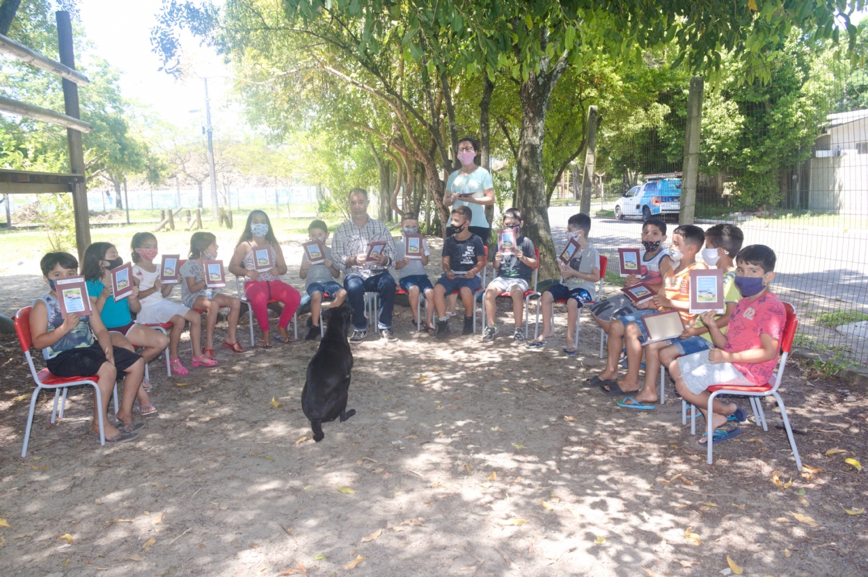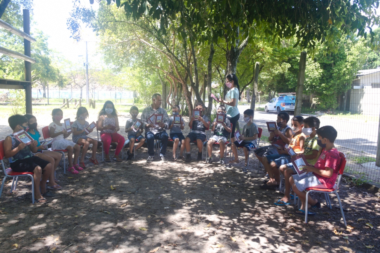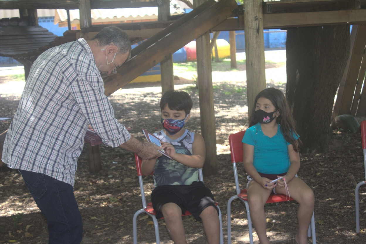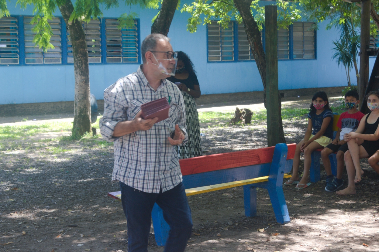 Algumas fotos da entrega do livro "O Menino, o Balão e o Vento" para alunos da EMEF Harry Roth do Bairro Santo Afonso em Novo Hamburgo. Este livro foi produzido de forma artesanal em cumprimento ao Auxílio Emergencial. Projeto realizado e executado com recuros da Lei Aldir Banc nº 14.017/20.