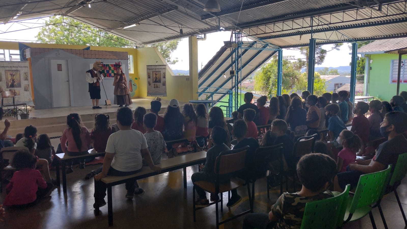 Algumas fotos da apresentaçãona EMEF Elvira Brandi Grin do Bairro Rondônia em Novo Hamburgo. Projeto realizado com recursos da Lei Aldir Blanc nº 14.017/20.